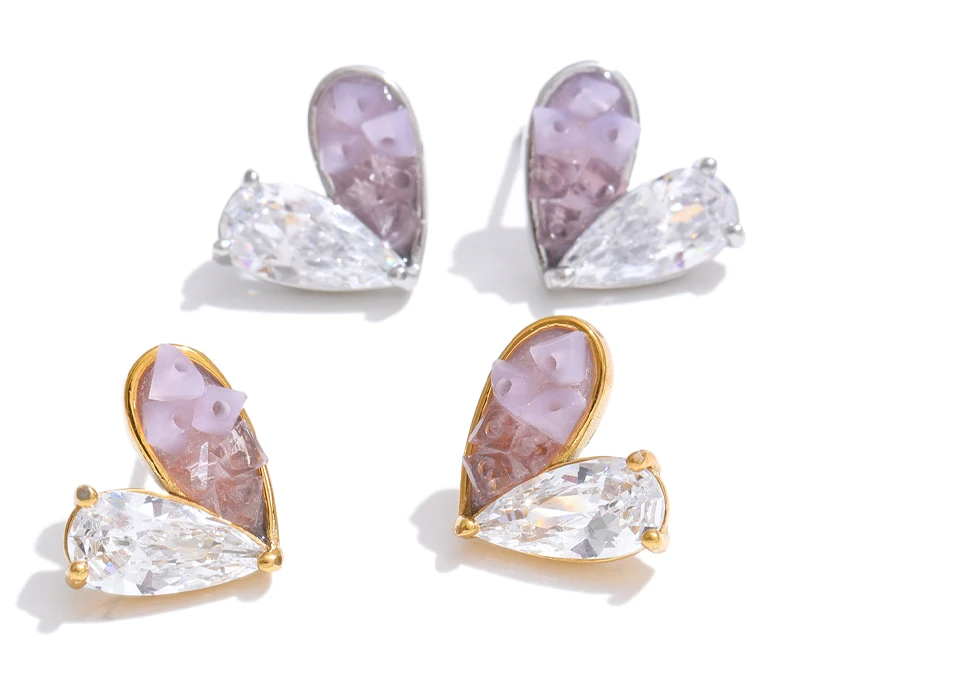 Brincos Pequeno Coração Cristal Rosa